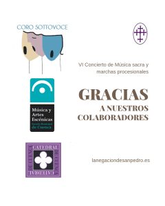 VI Concierto organizado por la Asociación Cultural “FLEVIT AMARE” junto a la Ilustre y Venerable Hermandad de La Negación de San Pedro, fomentando las tradiciones religiosas dentro del marco de la Cuaresma con la participación de dos reconocidas agrupaciones amateurs como son el Coro Sottovoce de Cuenca y la Banda de Música de Adultos de la Escuela Municipal de Música y Artes Escénicas de Cuenca. Un concierto que no te dejará indiferente. Ven y disfruta de la buena música en un marco incomparable.
